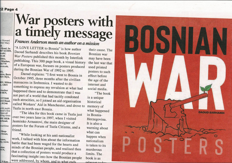 Bosnian War Posters es una compilación única de carteles y diseño gráfico de ámbito político. Incluye fotos de archivo clave de la guerra, así como nuevas fotos que ponen todas estas imágenes en contexto a día de hoy.