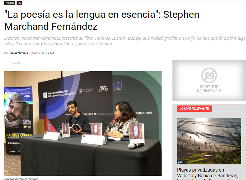 El lanzamiento en México, en la 37 Feria Internacional del Libro de Guadalajara, del libro de poesía Hacerse cuerpo, de Stephen Marchand Fernández, nos da noticia de que este género literario está más revolucionario que nunca.